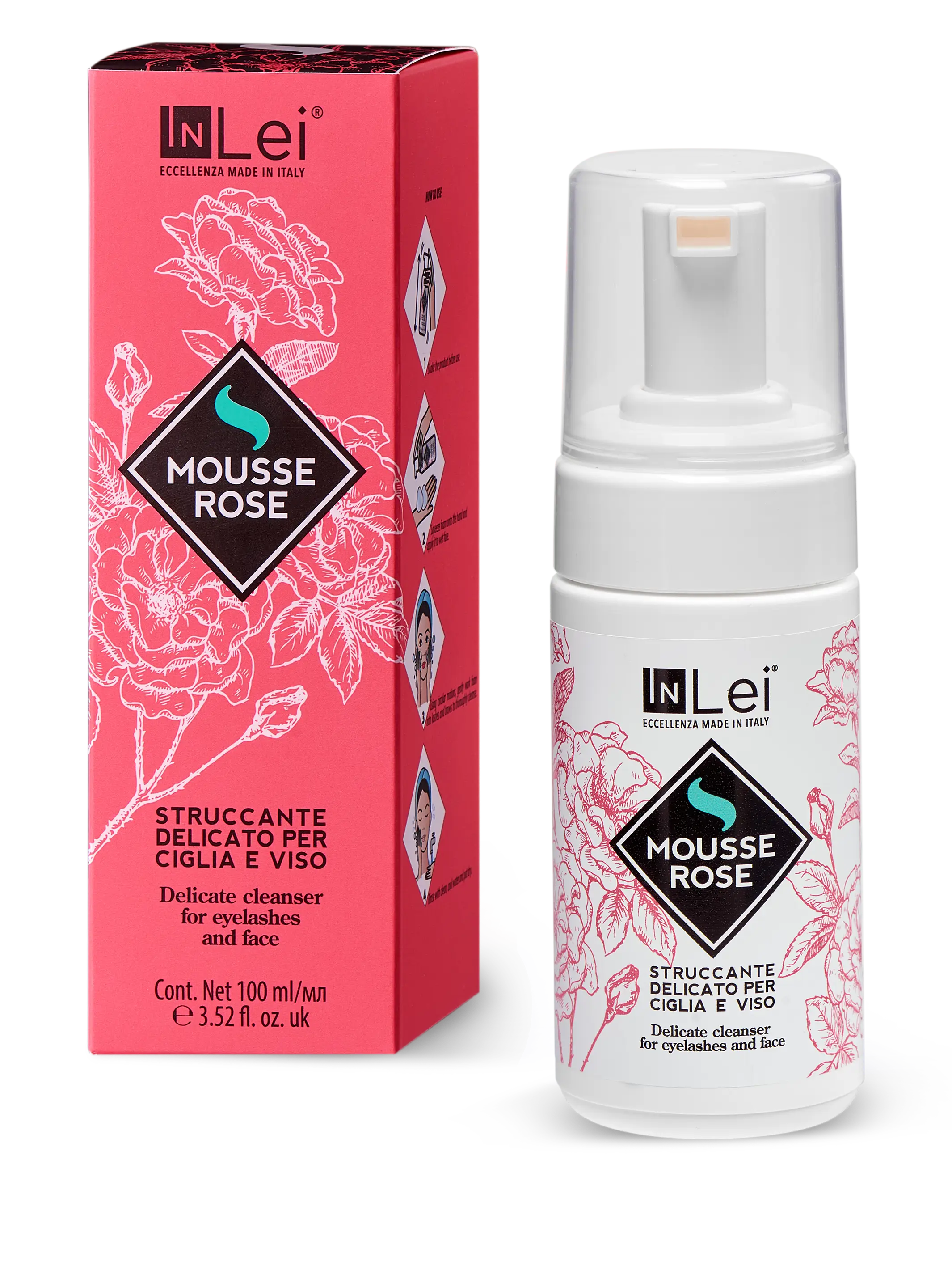 Toimeaine – Rosa Damasco (Damaskuse roos), on tõhus ja universaalne näohooldustoode: toniseerib ja puhastab nahka, annab elastsust ja takistab tõhusalt vananemist. Vaht puhastab õrnalt ja hooldab ripsmete ja kulmude karvu, on mõeldud igapäevaseks näo- ja silmaümbruse hoolduseks ning seda kasutatakse ka enne protseduure silmaümbruse naha puhastamiseks. Pikendab InLei® “LASH FILLER”-i mõju koos InLei® “FASHION LASH”-i palsamiga.